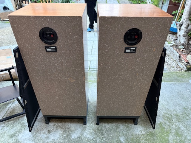 Diffusori da pavimento, buone condizioni, complete di stand in legno.